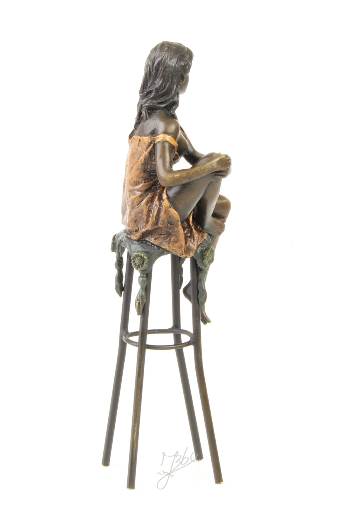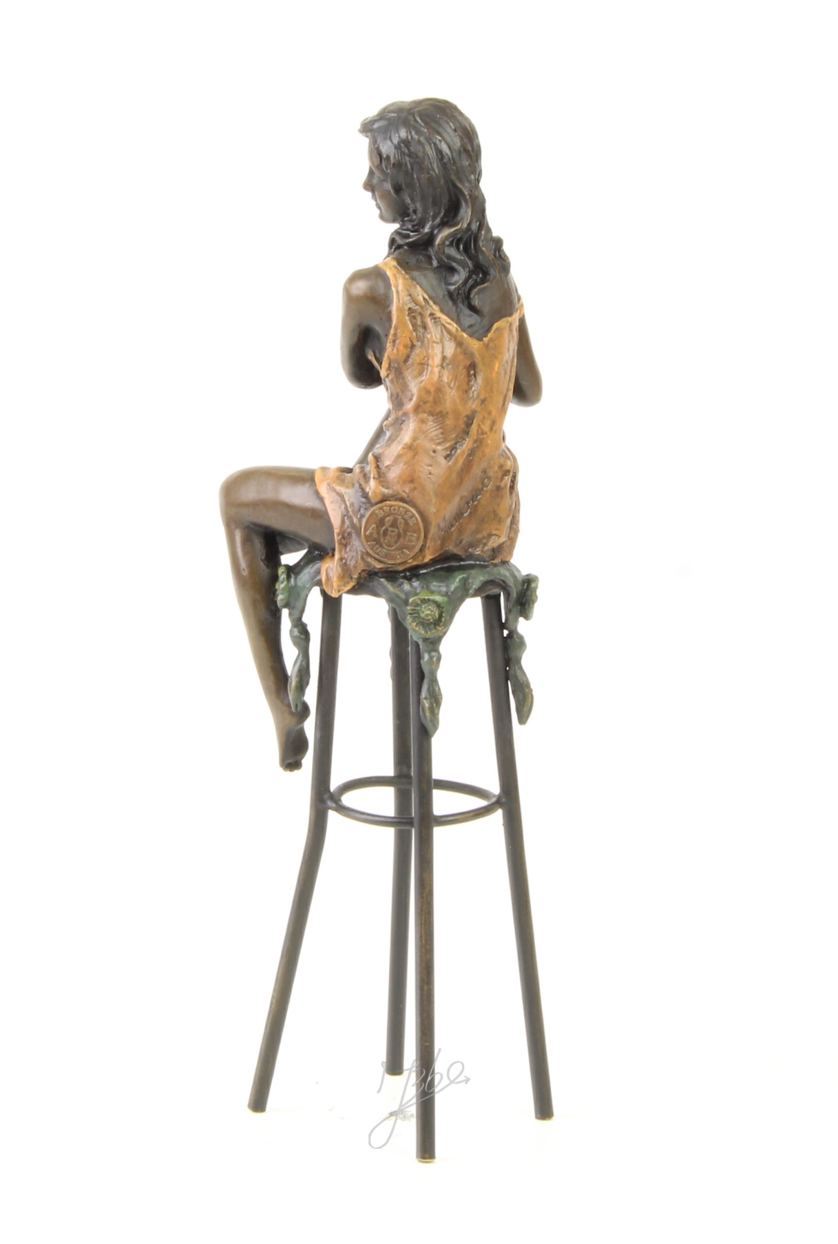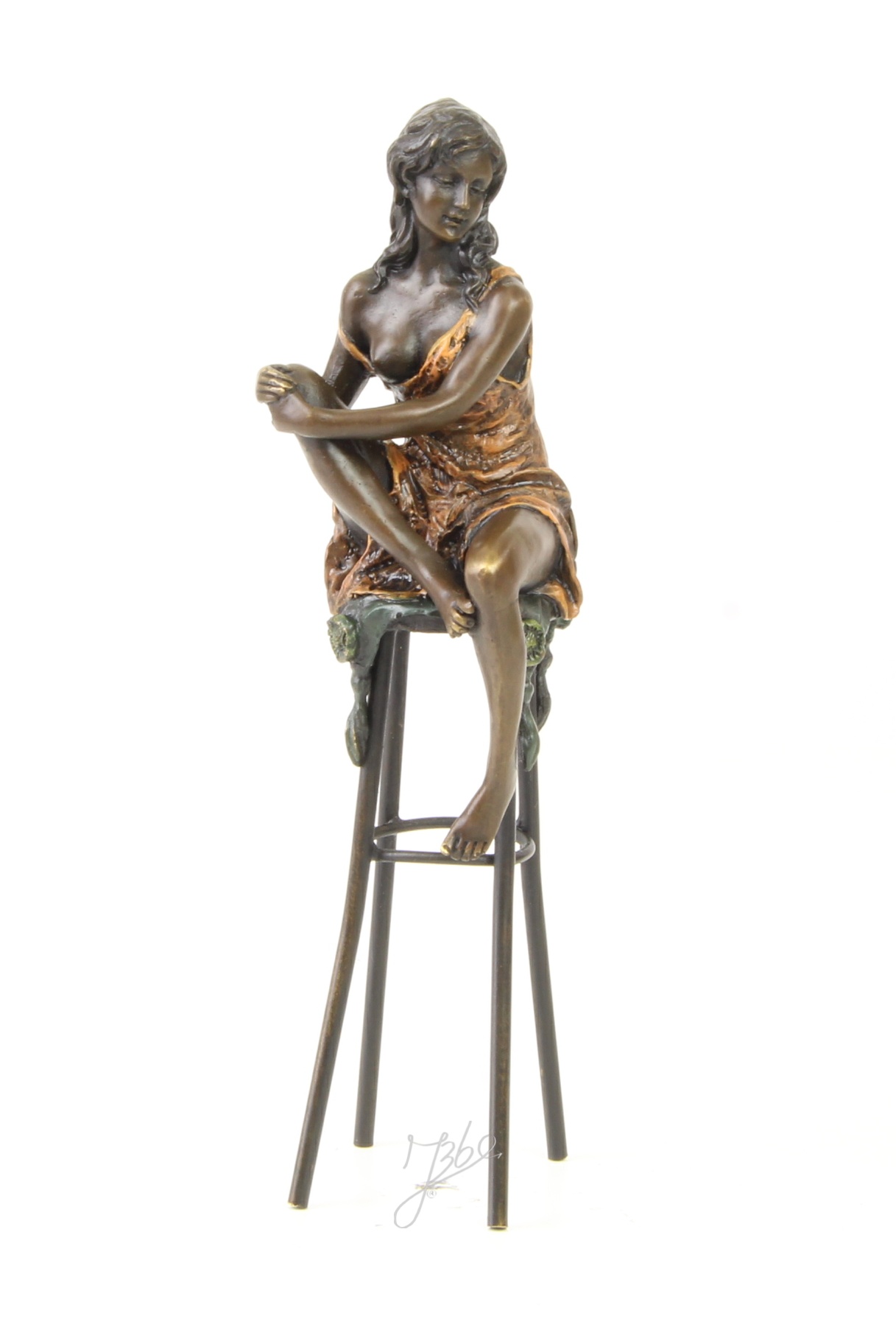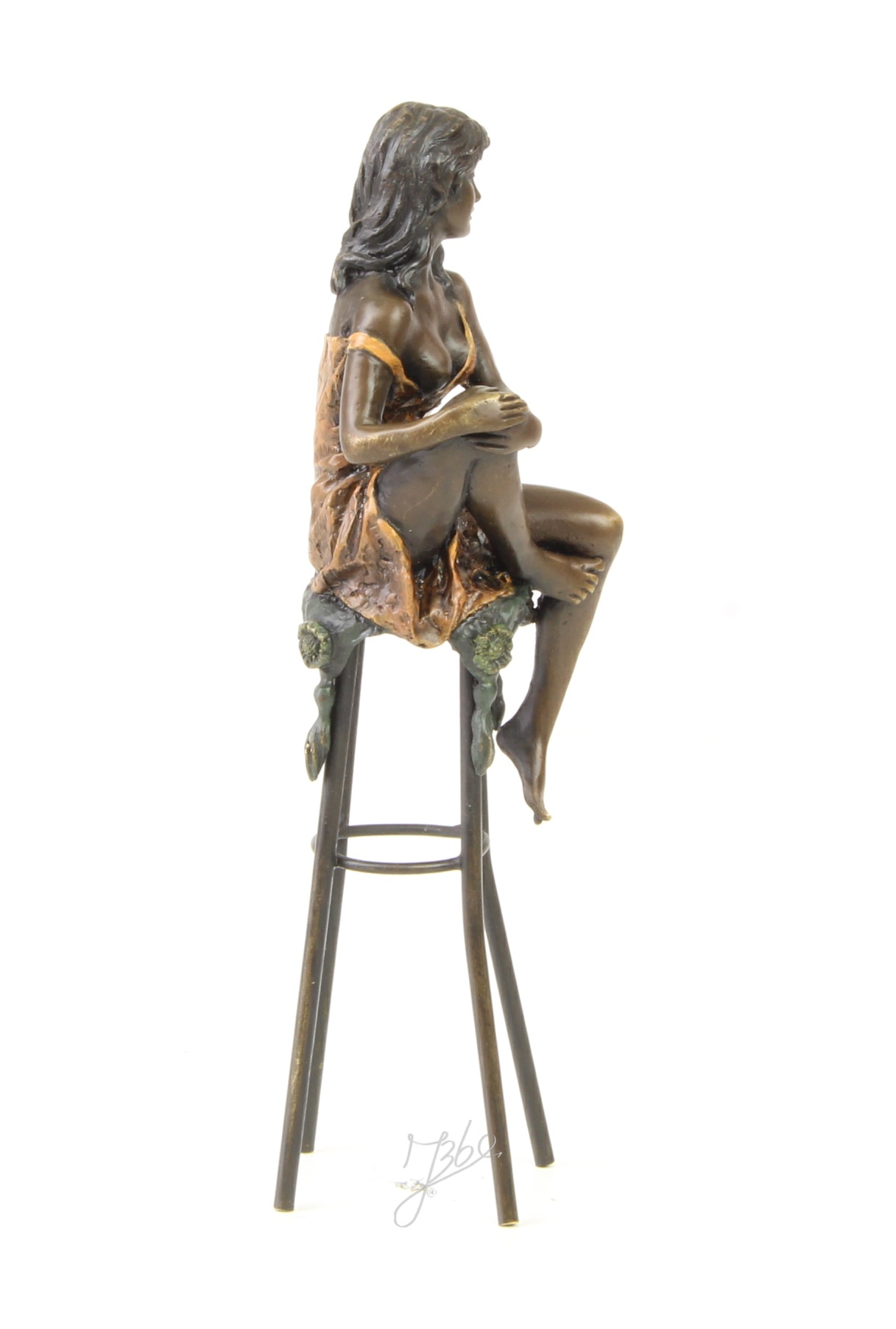 Art deco színes bronz szobor - bárszéken ülő női alak