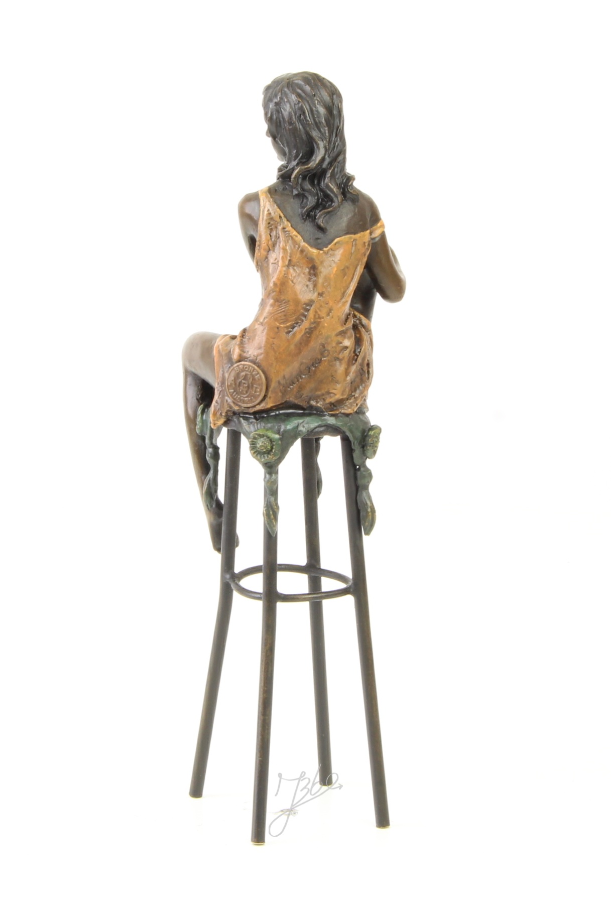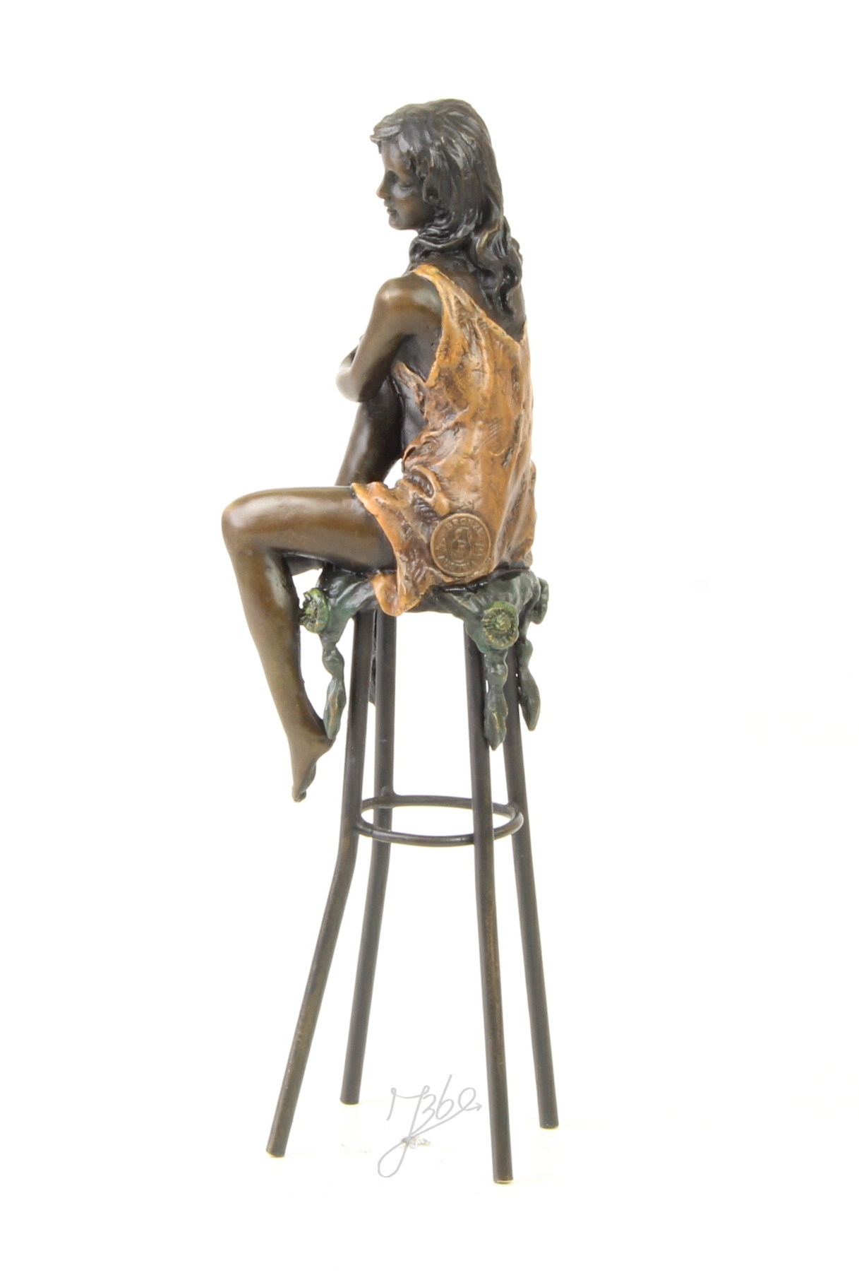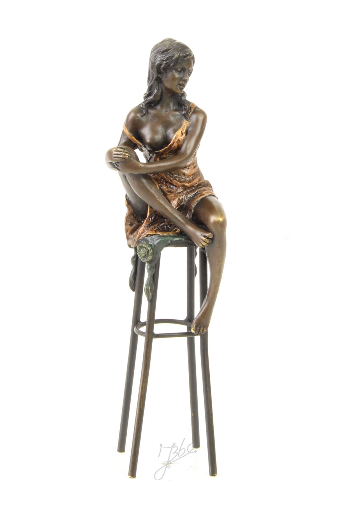 Art deco színes bronz szobor - bárszéken ülő női alak