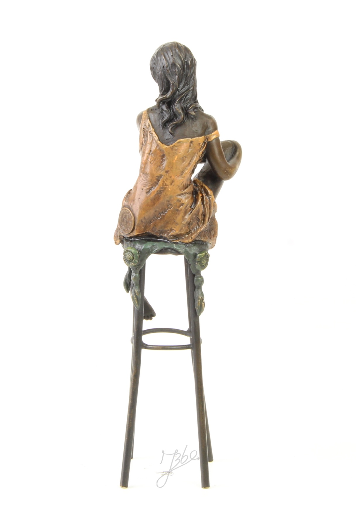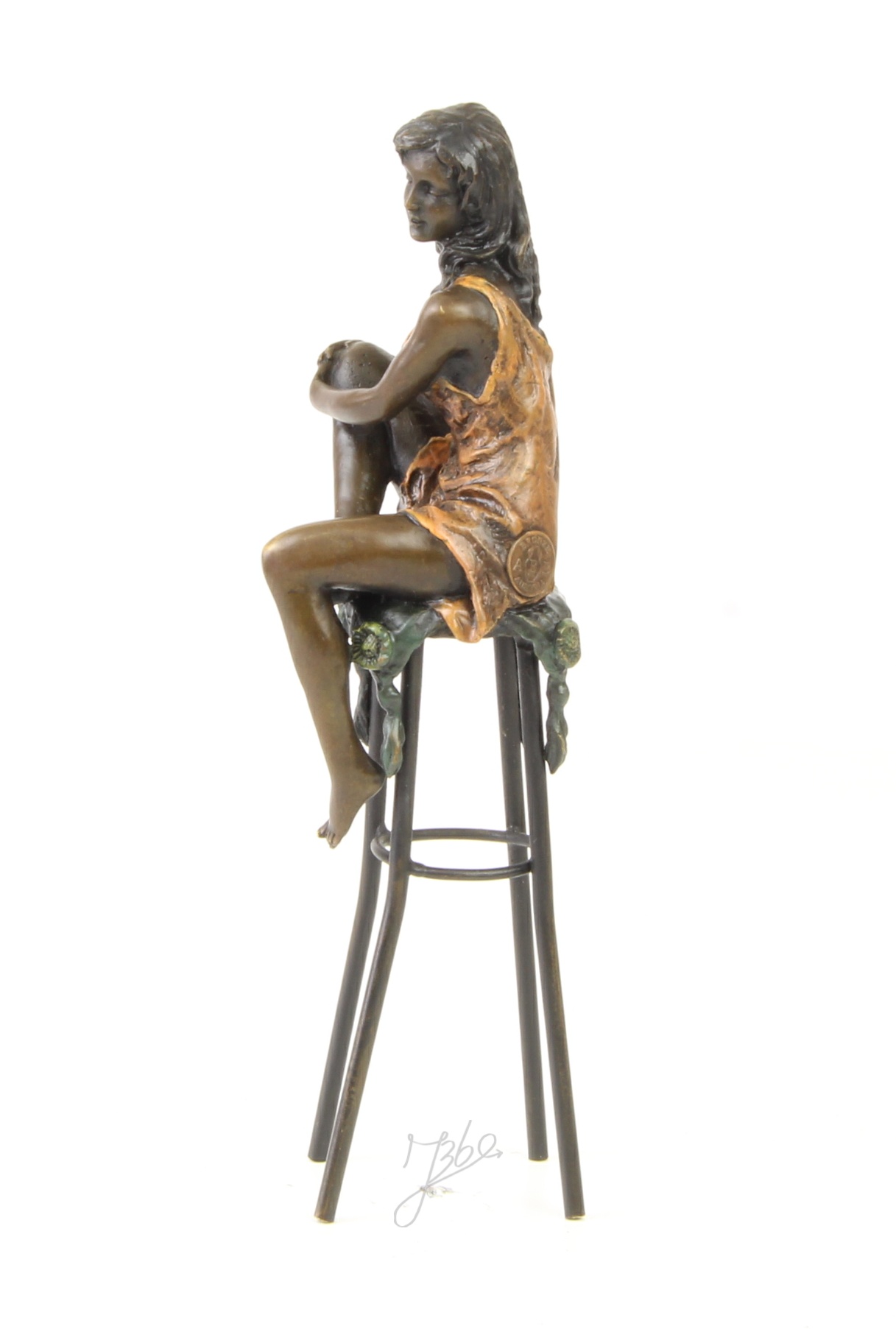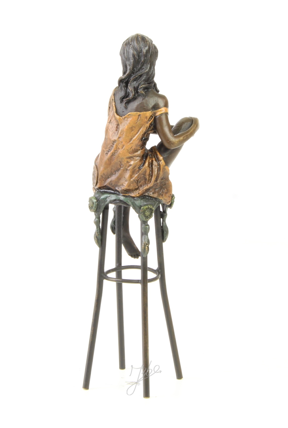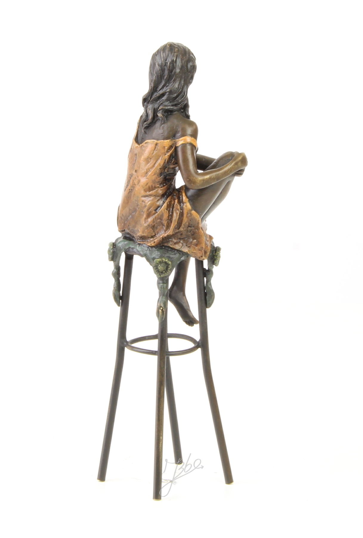Art deco színes bronz szobor - bárszéken ülő női alak