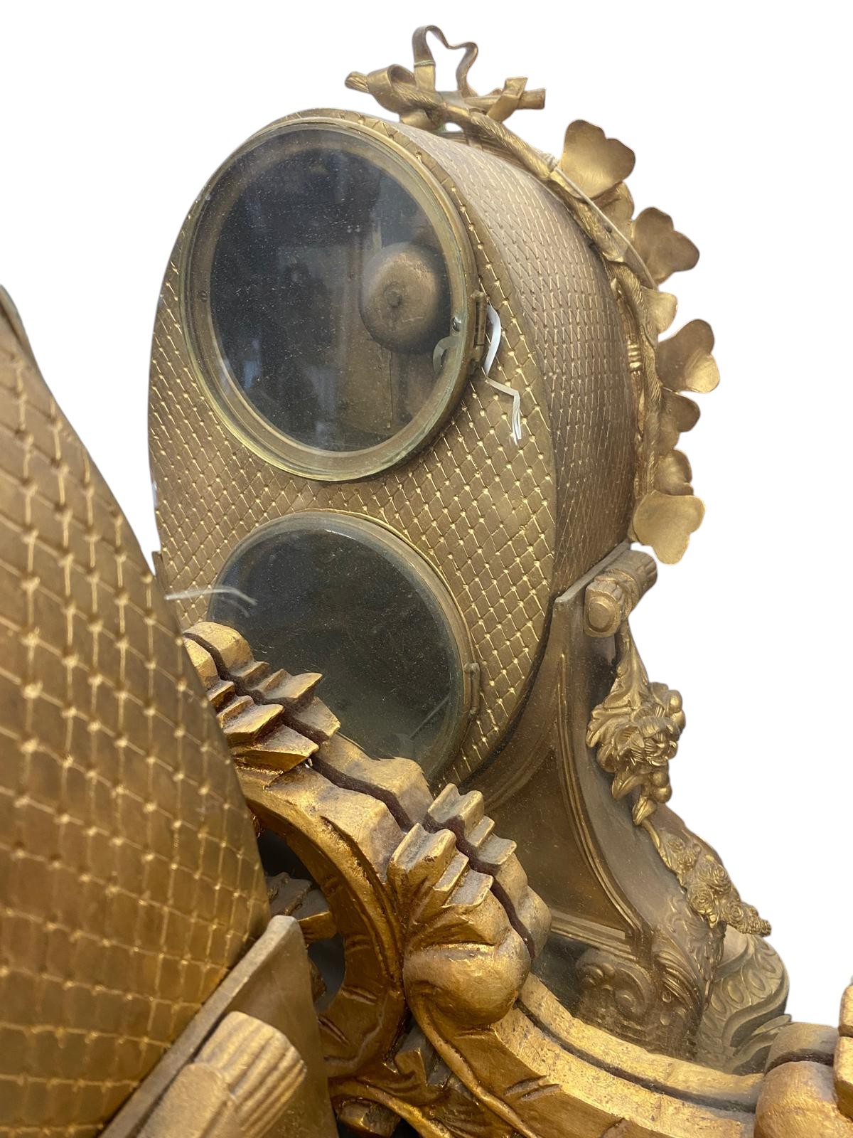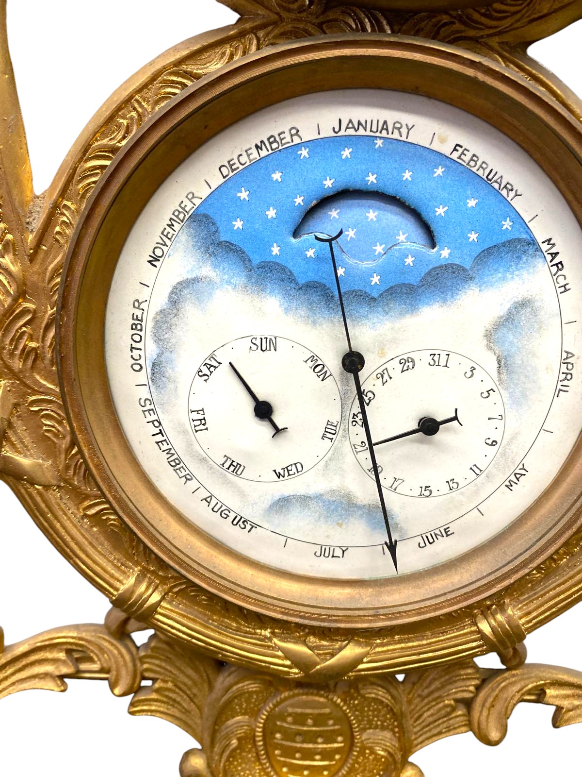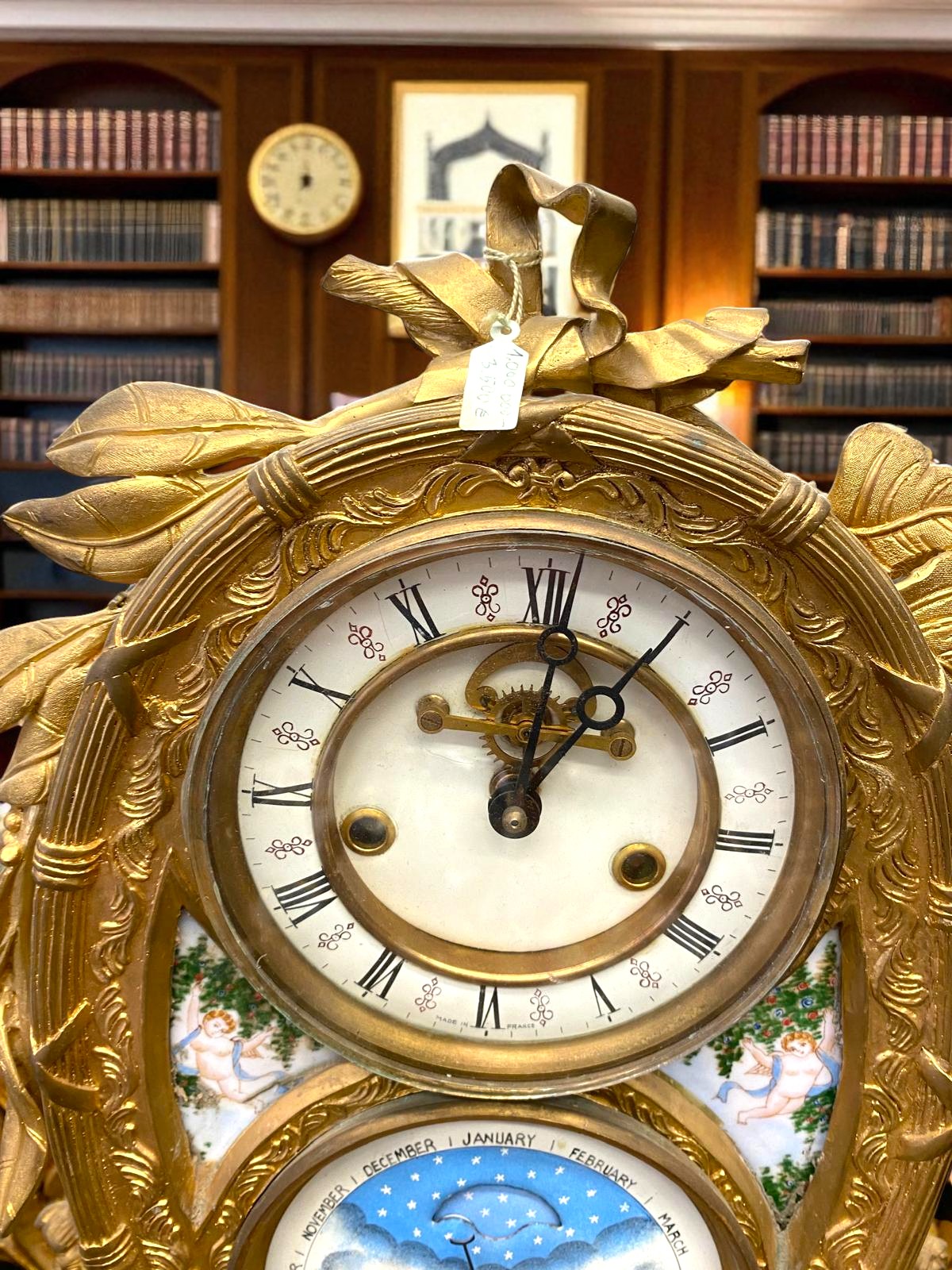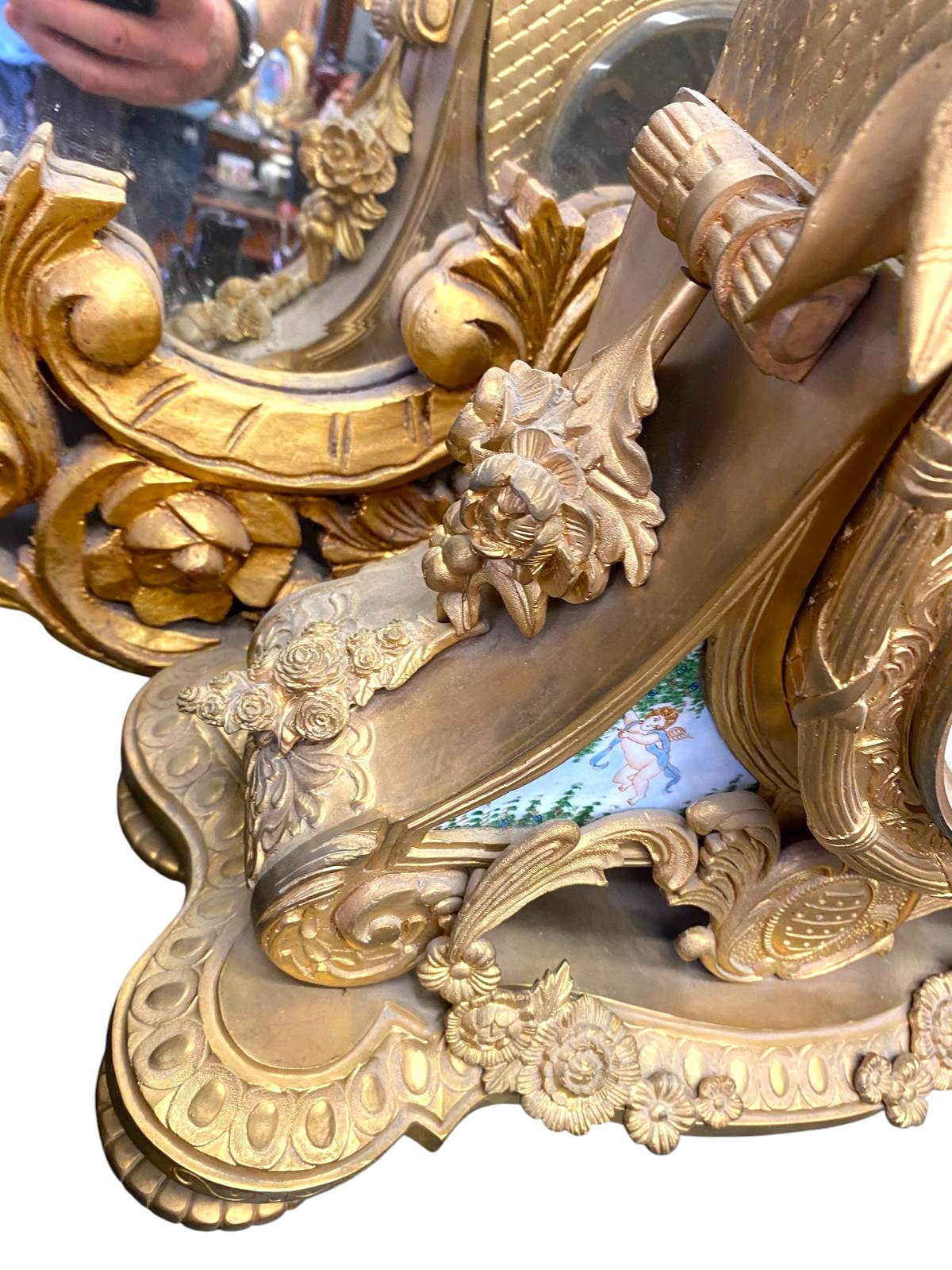 Jellemzők: Aranyozott bronz keret, festett porcelán számlapok és betétek.