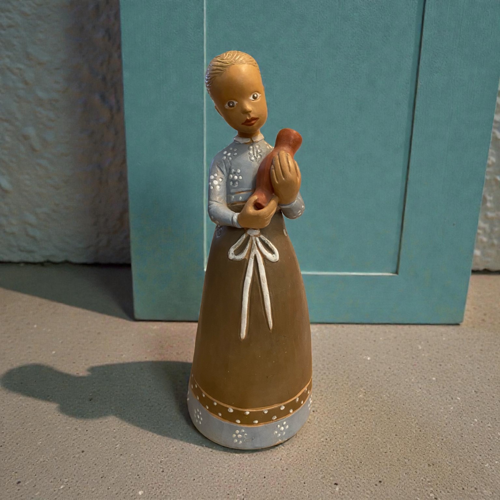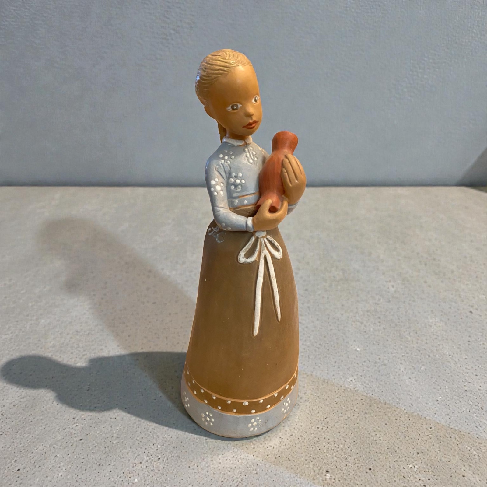 "Korsós leány" című, karakteres, népi ihletésű kerámiaszobor.